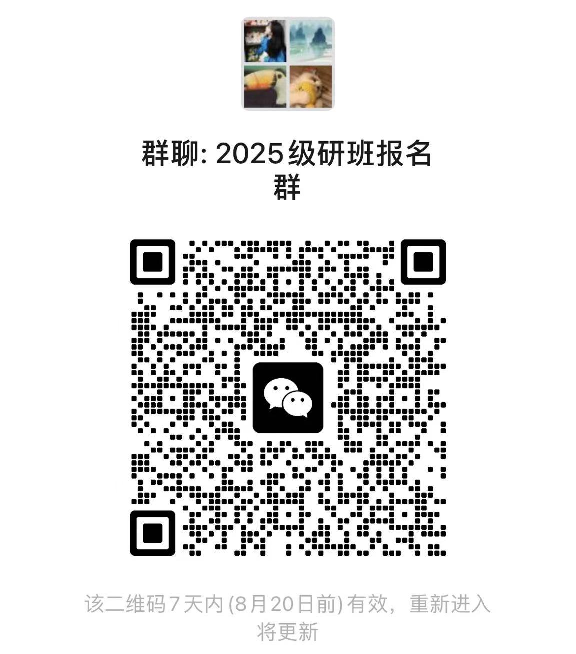 同学自愿报名,有意愿的同学请于8月15日20点前将报名表(报名表命名为:“新生班主任+姓名”)邮件发送至邮箱:1554838037@qq.com,并及时加入微信群(下图)。欢迎大家报名!具体时间及面式方式另行通知。欢迎符合条件的研究生积极报名参与!