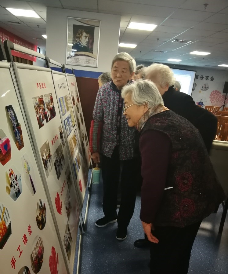 本次活动特邀院内的多位老人交流发言,交流他们与改革开放的故事:有的老人感叹国家改革开放40年来翻天覆地的变化,从站起来、富起来,一步步到现在强起来!有的老人则是从身边事与人出发,发表自己的所思、所想、所感,引起大家的热烈交流。为了组织好这次的分享会,社工学生们还收集了有特长和才艺的老人们的带有那个年代特殊记忆的作品进行展示,吸引许多老人的好奇和围观,最后,社工和老人们合唱“春天的故事”以及“军港之夜”,收集老人们对未来的期盼和展望,并贴在心愿树上……现场氛围温馨而感动。