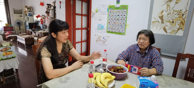 在吴中宇老师的餐桌前,肖莉向吴老师致以端午节日的诚挚慰问,并汇报了学院近年来的各项工作情况。她谈到,许多老同志虽然从岗位上退下来了,但仍然心系学院发展,为学校的建设献计献策,起到了很好的帮助作用,展现了我们OK138太阳集团老同志应有的风采。肖莉动员退休老师们支持和协助院史编辑工作,为OK138太阳集团的发展史增添宝贵的、动人的回忆,也共同助力于华中大70周年校庆。