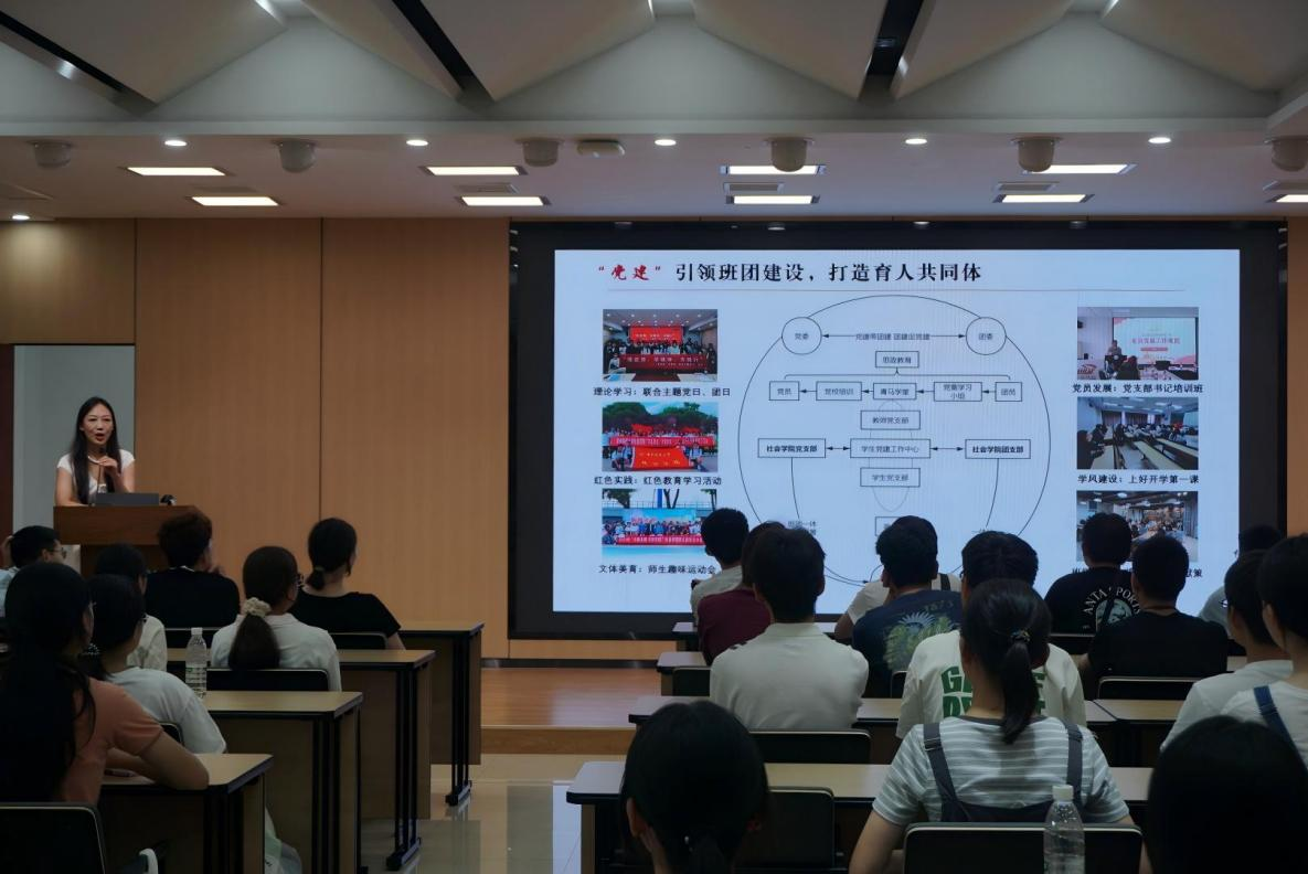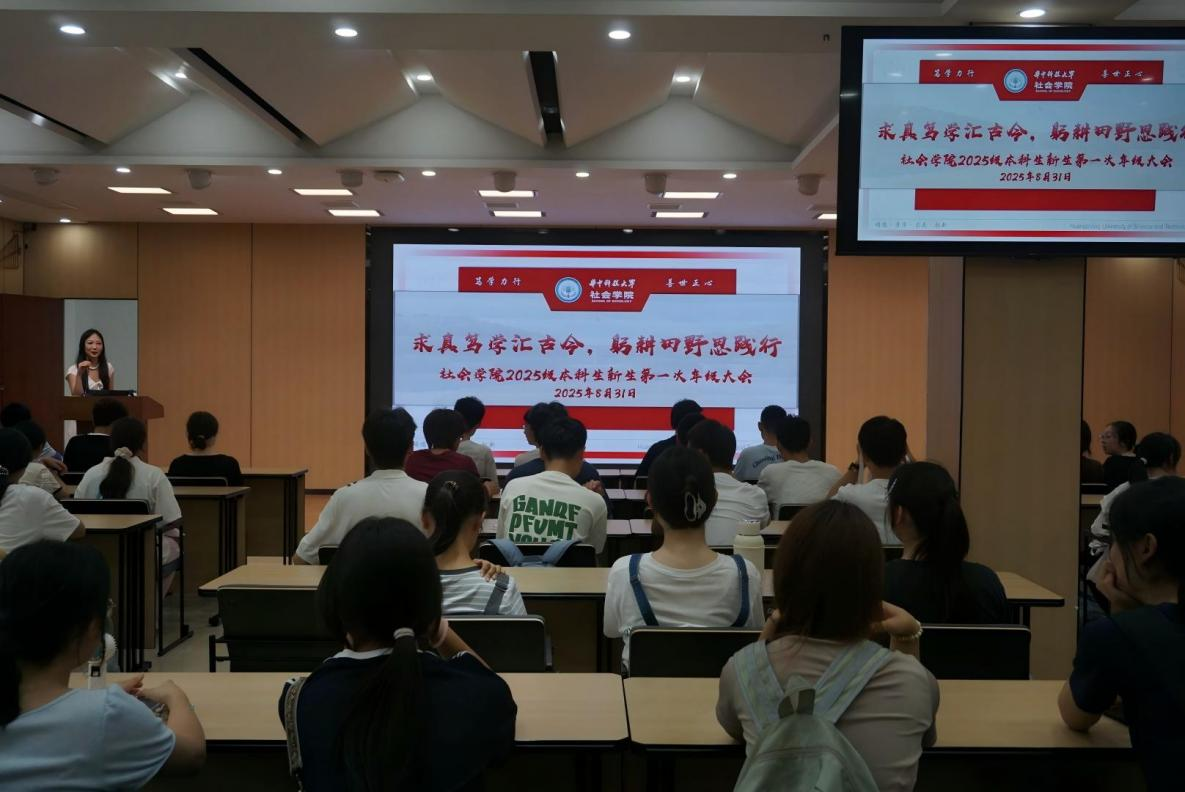 岐尚鲜介绍学院四十年砥砺学术、服务社会的传统,并阐释当前学生工作“强化组织、落实保障、深入研究、推进转化”实践育人方针,彰显学院以真招实效培育新时代社会学人的坚定决心。她为新生深度介绍“OK138太阳集团-云南临沧蚂蚁堆服务团队”“AI启明”“星希望”“长江经济带民生调研”等品牌项目,鼓励学子走出书斋、深入田野,把论文写在祖国的大地上,以扎实学识和躬身实践为中国式现代化注入青春能量。