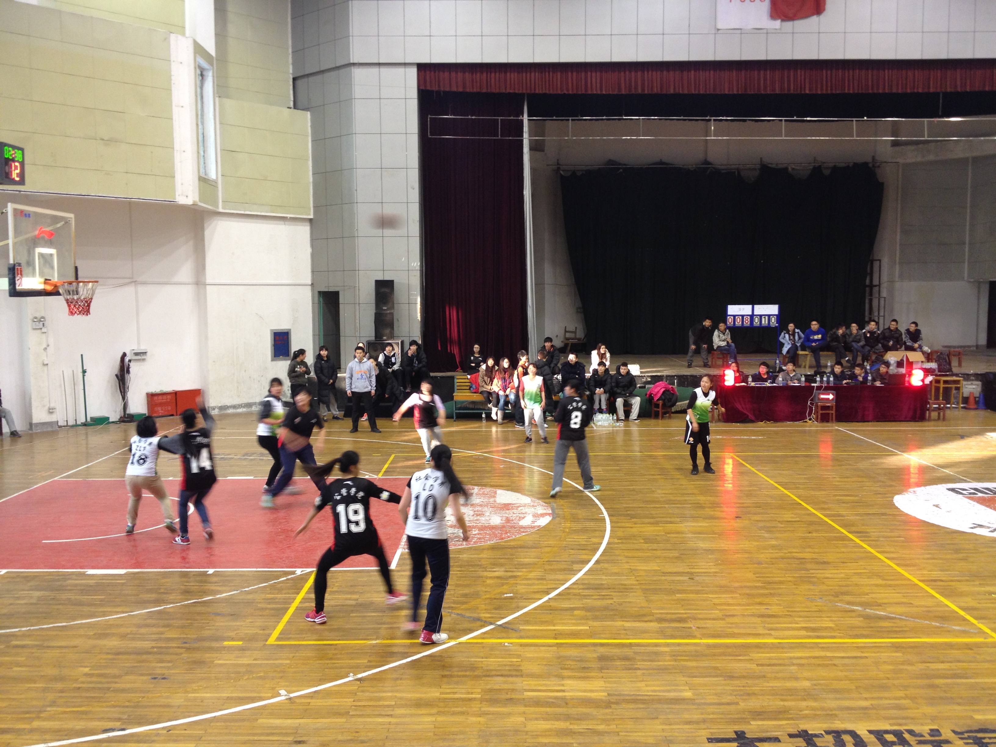 易地再战,公管延续了上半场的“双塔”战术。身高有明显优势的体特生相互配合,在内线“厮杀”。社会女篮队员们体力普遍下降,防守中无法阻挡公管女篮的脚步,后场篮板的保护也出现了问题。进攻中,公管女篮的紧逼战术让罗艳和韦晨笛很少有外线从容出手的机会,而内线进攻也因为身高劣势受阻。进攻不成,公管女篮的防守反击又凶悍地袭来。第三节,社会女篮体力不支问题暴露得十分严重,因此分差被迅速拉开。第三节结束,社会女篮落后17分。