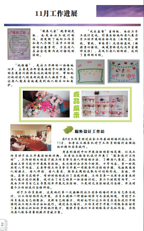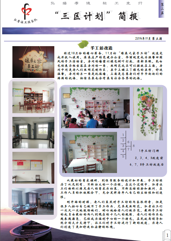 我系第二批社工专业人才“三区计划”项目以孝昌县光荣院为活动基地,开展老年社会工作项目培育。该项目将以孝昌县光荣院为依托,为院舍老人提供直接服务,丰富老人精神文化生活,提升老人在院舍的生活质量。在此基础上,还将对全县养老服务人员开展服务培训,增强他们的为老服务意识,提升其为老服务技能,同时推动和协助孝昌县建立社会工作服务制度。