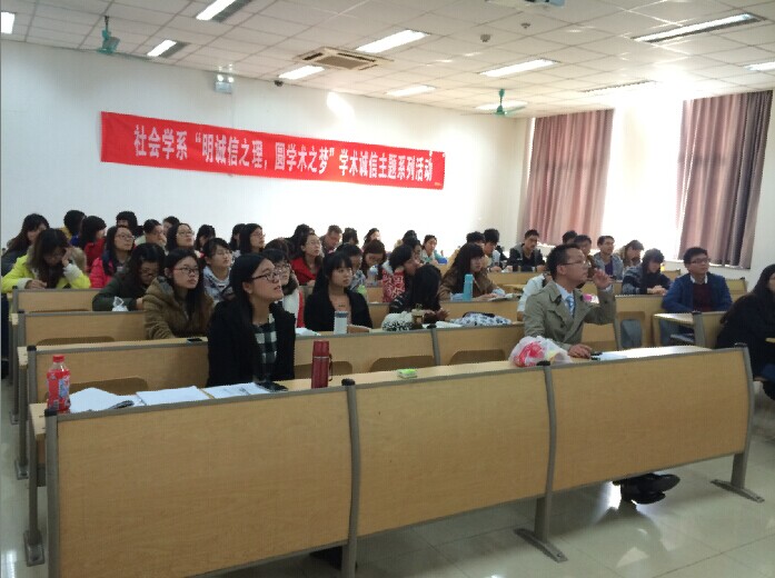 在11月中旬期间,社会学研究生会开展了学术诚信系列第三期活动,邀请了系副主任刘成斌副教授作主题讲座,宣讲学术之理,并在校园内进行诚信视频采访,了解研究生对学术诚信的看法。