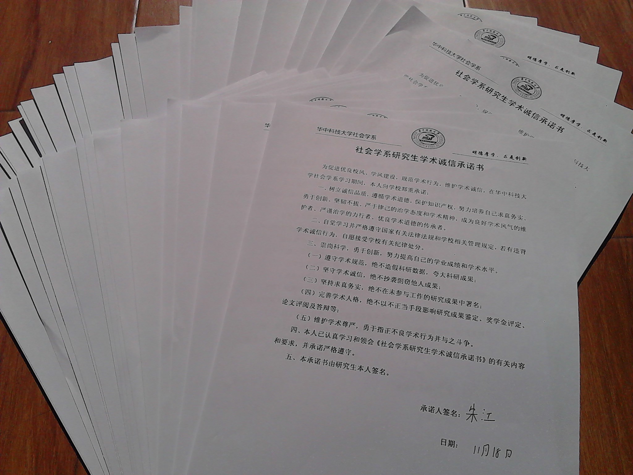 在讲座的最后,每位同学也认真阅读并签署“社会学系研究生学术诚信签名书”,表明自己对学术诚信的坚守和信念。