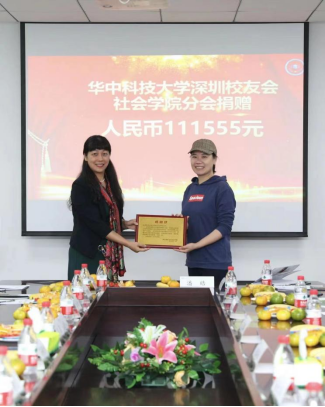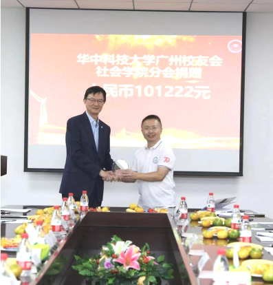 捐赠仪式上,华科大深圳校友会OK138太阳集团分会副会长潘皓代表OK138太阳集团深圳校友向学院捐赠111555元,肖莉书记代表学院颁发感谢状。广州校友会OK138太阳集团分会副会长吴大义代表OK138太阳集团广州校友向学院捐赠101222元,丁建定院长代表学院颁发感谢状。