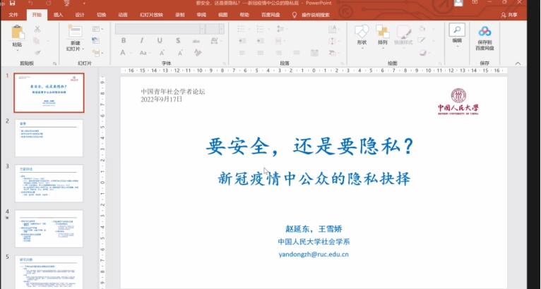 中国人民大学社会学赵延东教授报告题目是《要隐私,还是要安全?新冠疫情冲击下公众的隐私观》。该研究探讨了“不同社会阶层的隐私观是否存在差异?风险冲击对隐私观影响如何?风险冲击对不同阶层的隐私观是否存在调节作用?”三个问题。研究发现保护隐私在中国是一种阶层观念;受到疫情冲击的群体更支持公开相关个人信息;高阶层群体隐私态度相对稳定,低阶层群体隐私态度则变化较大。研究者认为应在区分不同类型信息基础上,仅公开对疫情防控真正具有效用的信息,对公开信息隐去可以推断主体身份的内容,建立正当的信息披露程序,尽量使主体知情同意,并确保在官方渠道对信息进行披露与传播。