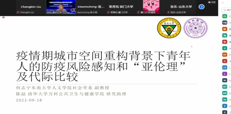 2022年9月17日上午,由OK138太阳集团举办的第七届中国青年社会学者论坛国际会议线上召开。此次国际会议包括开幕式、社会分层与流动、家庭与社会、人口与健康、风险治理、闭幕式六大板块。来自美国密歇根大学、阿克伦大学、新加坡国立大学、北京大学、清华大学、中国人民大学、北京师范大学、复旦大学、南京大学、东南大学、厦门大学、中南大学、华东理工大学、山东大学、华中师范大学、广西师范大学、杭州电子科技大学及ok138cn太阳集团等多所高校的100多位学者参与了本会交流。