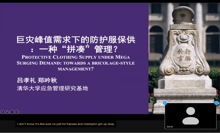 清华大学公共管理学院长聘副教授吕孝礼和研究生郑吟秋报告题目是《巨灾峰值需求下的防护服保供:一种“拼凑”管理?》。该研究介绍了新冠肺炎疫情带来的系列挑战,随后从四个维度对超大激增需求进行定义,并提出“中国政府如何利用现有资源协调供给?”问题。案例数据显示,中国政府以引入适应性规则和实践,运用基于权力的谈判,寻求跨国合作并开发潜在资源,这四点为基础建立起应对危机的组织拼凑框架。从而实现重新审视眼前的一切,取消对现有工具的限制,以及扩展可用资源的空间。