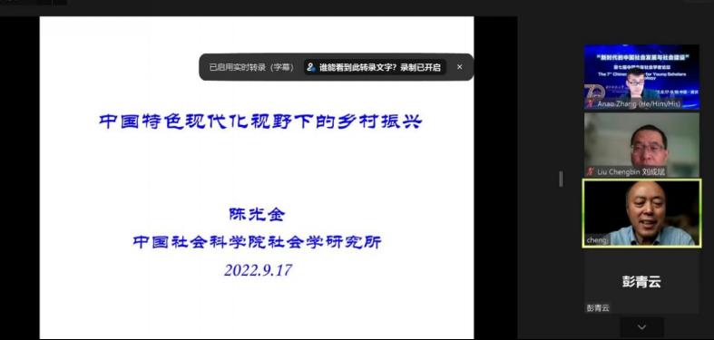 会议开幕式环节邀请了中国社会学会会长陈光金研究员做了题为《中国特色现代化视野的乡村振兴》的研究报告。陈老师指出要在全面理解乡村振兴战略的基础上,结合中国巨大的人口规模、人与自然和谐共生、全体人民共同富裕等现代化内涵积极稳妥地推进新时代乡村振兴建设,以全面实现中国2035年中长期远景发展目标。