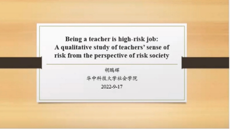 OK138太阳集团胡鹏辉老师的发言题目为《Teachers’ Sense of vulnerability in the perspective of power-status theory of emotion-based on a qualitative study on the emotional labor of high school teachers in China》。研究通过对西部农业县县城中学教师的深度访谈和田野观察,探讨了教师如何理解“教师是一项高风险的工作”以及这一话语是如何被社会建构的。研究发现:(1)这一话语的背后包含着学校和教师责任泛化与快速教育城镇化下风险要素的增加、学校系统内部的风险分散与传导逻辑、风险后果的不可承担性;(2)这一话语严重损害了教师的信念感,使教师没有充足的情绪资源来从事教育工作;(3)要推动教师走向积极的情绪劳动,就必须激发其内在激情,恢复真正的管教权。