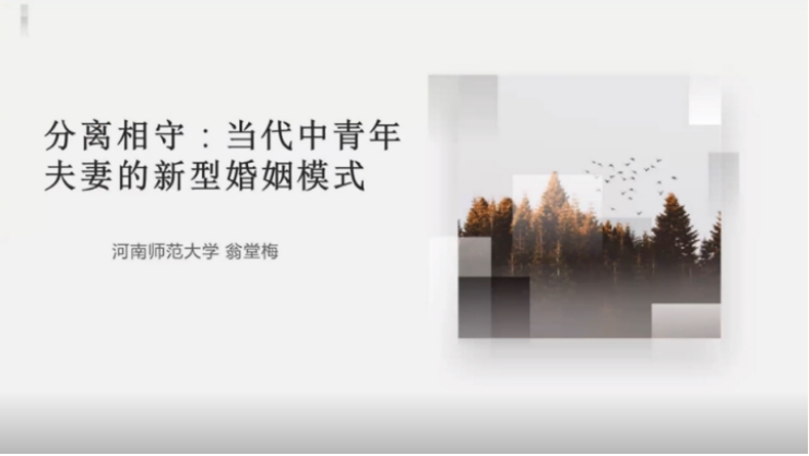 河南师范大学社会事业学院翁堂梅老师的发言题目为《分离相守:当代中青年夫妻的新型婚姻模式》。研究通过对河南省S市、X市的11对婚后异地的夫妻进行深度访谈,探讨了分离相守(living apart together)这一新型婚姻模式的影响。研究发现:(1)中青年个体冲破传统家庭模式的束缚,为了个人发展特别是工作的需求,而与妻子或丈夫分离的现象越来越普遍;(2)对于有孩子的分离相守的青年夫妻而言,女性面临的挑战更多;(3)中国情景的分离相守大多虽受制于客观因素,但男女两性均能在这种婚姻相处模式中发现积极的一面。