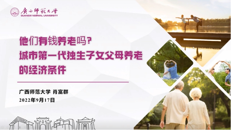 广西师范大学政治与公共管理学院肖富群院长的发言题目为《他们有钱养老吗?城市第一代独生子女父母养老的经济条件》。研究通过对北京、南京、郑州、佛山、绵阳五市的调查探讨了城镇第一代独生子女父母未来养老的经济保障问题。研究发现:(1)城镇独生子女父母的物质条件和经济能力较好,自立性较强;(2)城镇独生子女父母与非独生子女父母在收入来源和支出结构上没有显著差异;(3)子女作为父母养老的一种重要支持,其作用不可忽视;(4)城镇独生子女父母与非独生子女父母家庭财富代际流动方向相反。