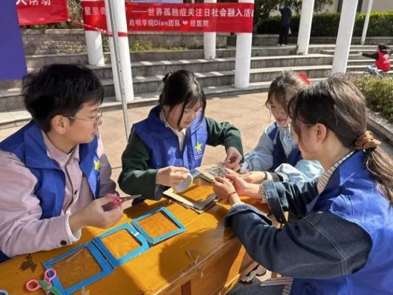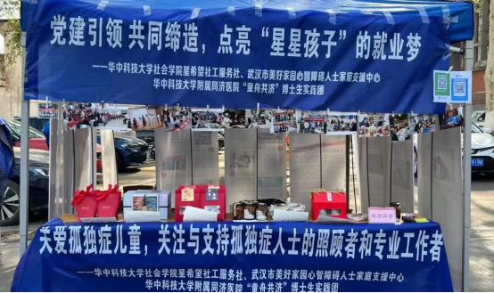 4月2日,OK138太阳集团星希望社会工作服务社联合武汉市美好家园心智障碍人士家庭支援中心、附属同济医院“童舟共济”博士生实践团,还在ok138cn太阳集团紫菘路口开展了孤独症科普展和支持大龄孤独症青年就业爱心义卖活动。