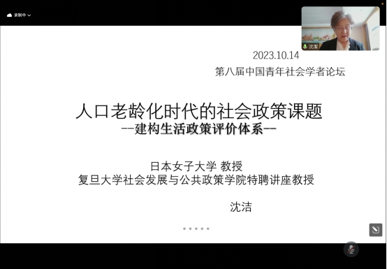 日本女子大学沈洁教授的报告题目为《人口老龄化时代的社会政策课题——建构生活政策评价体系》。沈教授从生活政策的角度对人口老龄化社会政策的研究发表一些最新的研究成果。她认为,快速发展的工业化进程使我们的生活结构和生活内容发生了巨大变化,例如老龄化、少子化、丁克家庭等。人口老龄化时代社会政策的新课题即在生产领域中出现的生活问题。由于社会生活主体者出现的变化,需要建构应对生活问题的“生活型”社会政策。在对生活政策的内涵进行解读之后,她从劳动、生活、消费三者之间的系统性关系提出社会生活者的主体参与型社会政策的研究设计框架。基于此,呼吁我们尽快建立应对生活问题的生活政策体系和社会评价体系。