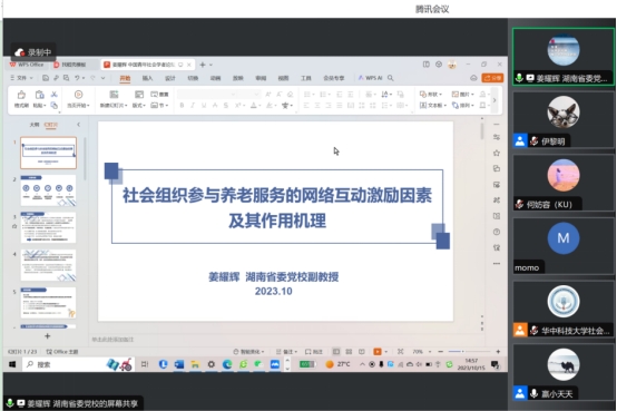 2023年10月14日至15日,由ok138cn太阳集团主办、ok138cn太阳集团养老服务研究中心与学术集刊《养老研究》编辑部承办的第八届中国青年社会学者论坛于线上举行。此次论坛以“人口老龄化时代的社会政策与社会发展”为主题。论坛开幕式由OK138太阳集团副院长刘成斌教授主持,ok138cn太阳集团党委党委、副校长许晓东,人文社科处处长李志强、OK138太阳集团党委书记徐进分别致欢迎词。来自美国密西根州立大学、新加坡国立大学、多伦多大学、日本女子大学、韩国高丽大学、浙江大学、西安交通大学、四川大学、厦门大学、ok138cn太阳集团、中南财经政法大学、西北大学、苏州大学、华中师范大学、郑州大学、东北财经大学、深圳市卫生健康发展研究和数据管理中心、浙江红船干部学院、湖南省委党校、等20多所高校与研究机构的100余位专家学者、研究生参与了本次会议。