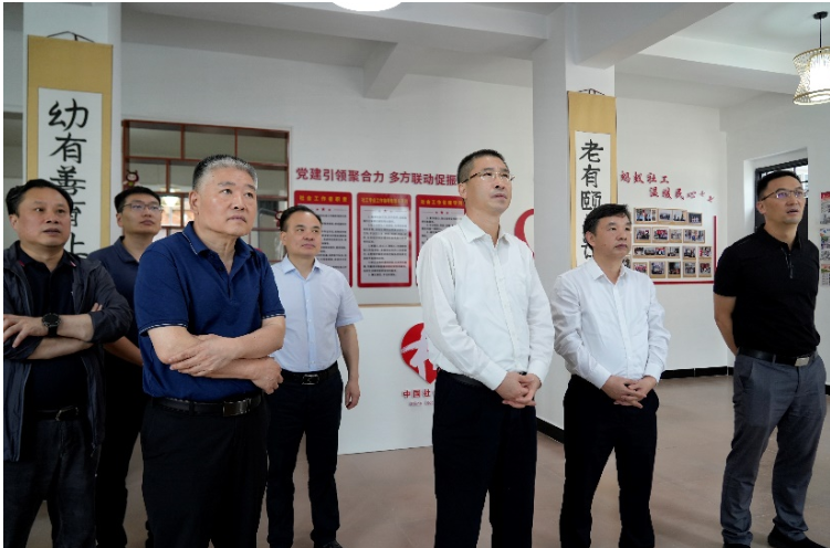 在调研蚂蚁堆村社会工作服务室期间,张广军书记听取了OK138太阳集团师生驻村工作的汇报。OK138太阳集团博士向凯以“‘扎根乡土、社区为本’ok138cn太阳集团乡村治理行动研究”为主题进行汇报,展示乡村振兴研究院团队驻扎蚂蚁堆村的实践。博士生汪希贤详细介绍了蚂蚁堆村社会工作服务室的运作模式,汇报社工室的主要服务成果。王彦蓉教授聚焦于社会工作服务室推行的 “一老一小”、老幼同养的服务研究。