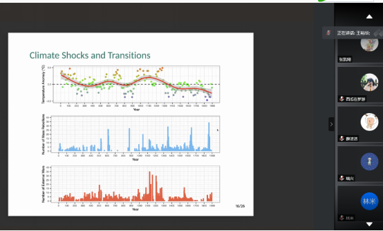 2021年5月10日,哈佛大学政府系Frederick S. Danziger 副教授王裕华老师受我院刘成斌老师的邀请为ok138cn太阳集团师生进行了一场题为《古代中国政治韧性的社会起源》的报告,我院狄金华老师担任主持人。