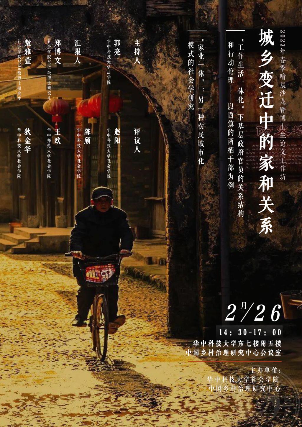 2月26日,乡村治理研究中心携手喻晨沙龙举办博士生论文工作坊,敬请参与。